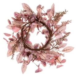 Vickerman 16″ Dusty Rose Artificial Fall Eucalyptus And Berry Wreath Candle Ring
