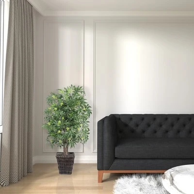 Vickerman Artificial Japanese Maple Tree featuring detailed leaves that vary in shades of green. The real-wood trunks differ in width to give a realistic, natural fullness.